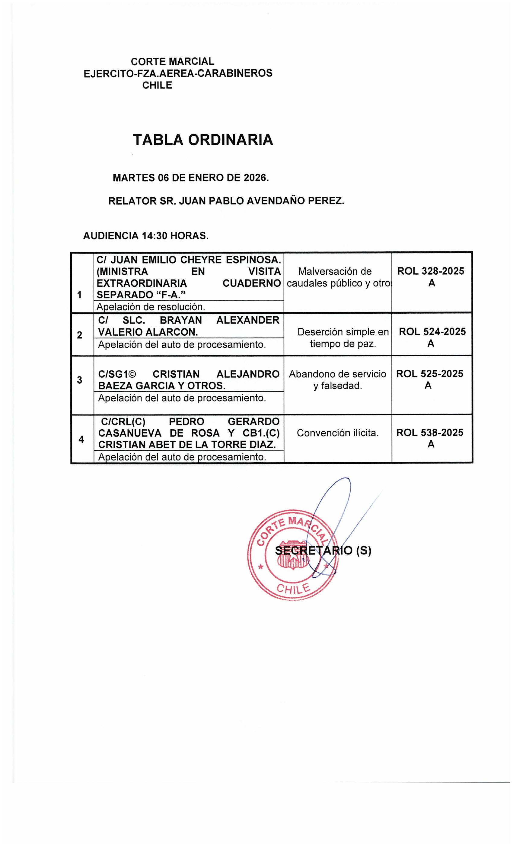 Tabla ordinaria martes 06 de enero del 2026